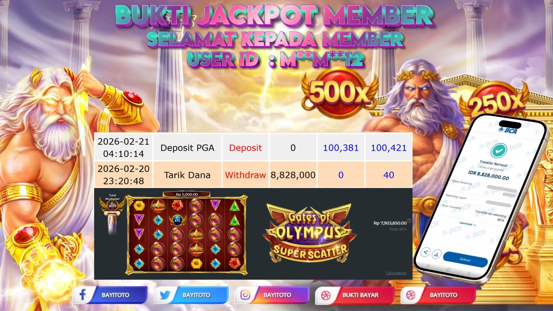 Selamat kepada User id : M**A**57 Telah berhasil mendapatkan kemenangan besar p