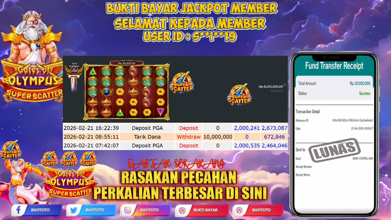 Selamat kepada User id : S**I**19 Telah berhasil mendapatkan kemenangan besar