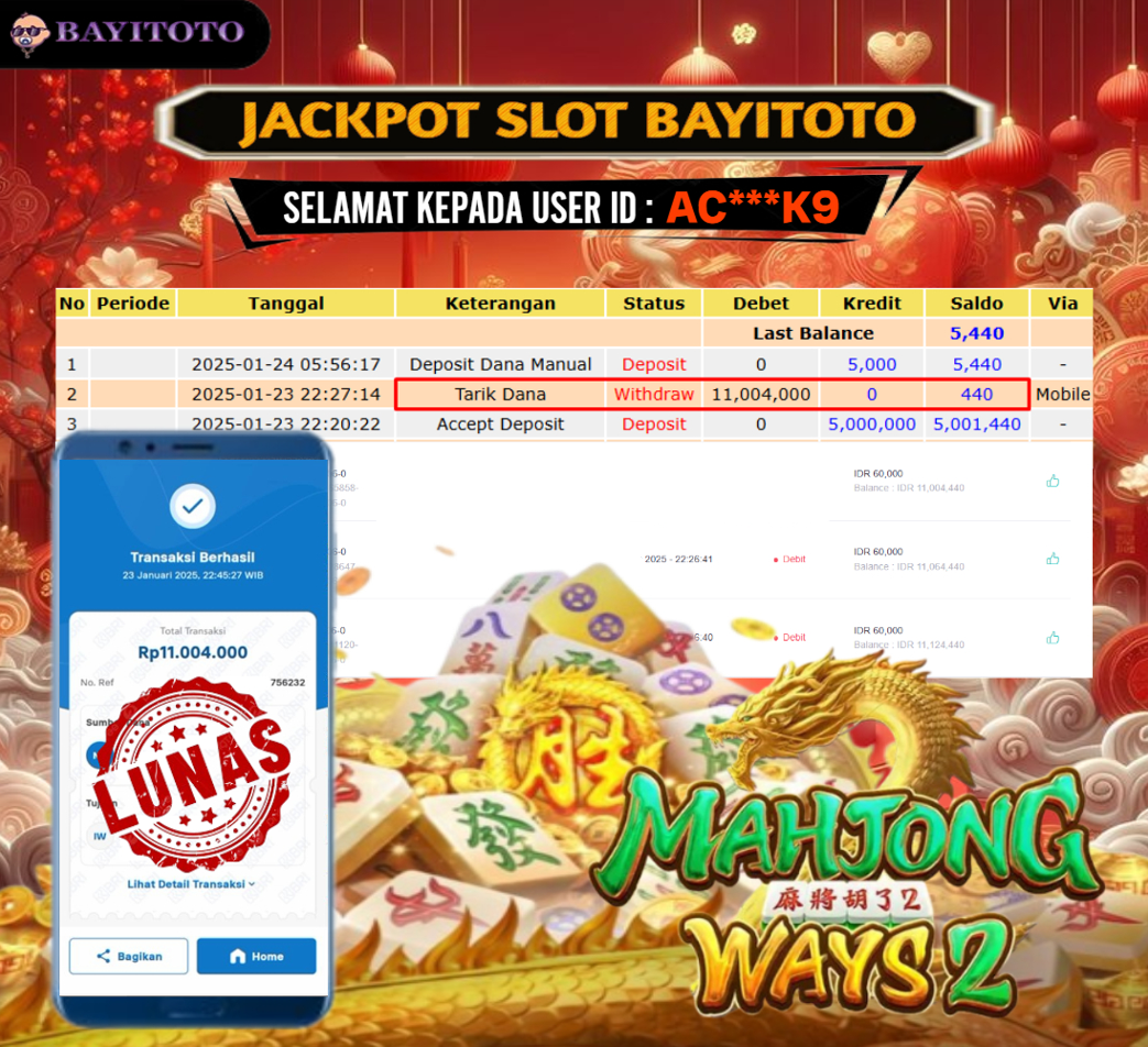 Selamat kepada User id : AC***K9 Telah berhasil mendapatkan kemenangan besar pad